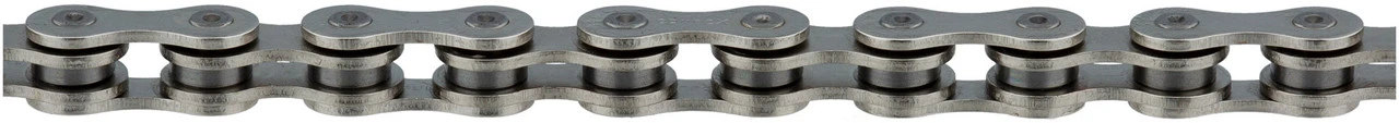 Die 7R8 Kette von Wippermann/Connex überträgt aufgrund verstärkter Laschen die Pedalkräfte ohne Dehnungsverluste. Die gebuchsten Gelenke der Kettenglieder sorgen für eine hohe Lebensdauer und geringen Verschleiß. Die Kette ist für schmale Nabenschaltungen geeignet.
