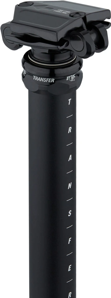 Die Transfer Performance Elite Vario-Sattelstütze von Fox Racing Shox mit einer schwarzen, harteloxierten Oberfläche und 150 mm Hub glänzt mit geringer Gesamtlänge und Einstecktiefe. Das macht sie kompakter und leichter. Zwei unterschiedliche Hebeldesigns sorgen dafür, dass die Sattelstütze zu jedem Antrieb passt. Der Bowdenzug zur Ansteuerung wird innen verlegt. Zudem wurde die Wartungsfreundlichkeit verbessert.