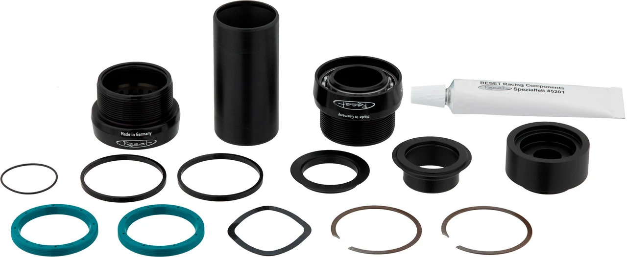 Lieferumfang:1 x Innenlagerschale Reset Racing GXPlite MTB links, inkl. Lager1 x Innenlagerschale Reset Racing GXPlite MTB rechts, inkl. Lager1 x Innenlagerhülse Reset Racing für 68/73 mm1 x Wellring1 x Sprengring1 x Dichtring1 x Endkappe1 x Abdeckung1 x Einbauhilfe Reset Racing2 x O-Ring1 x Distanzring 2,5 mminkl. Fett