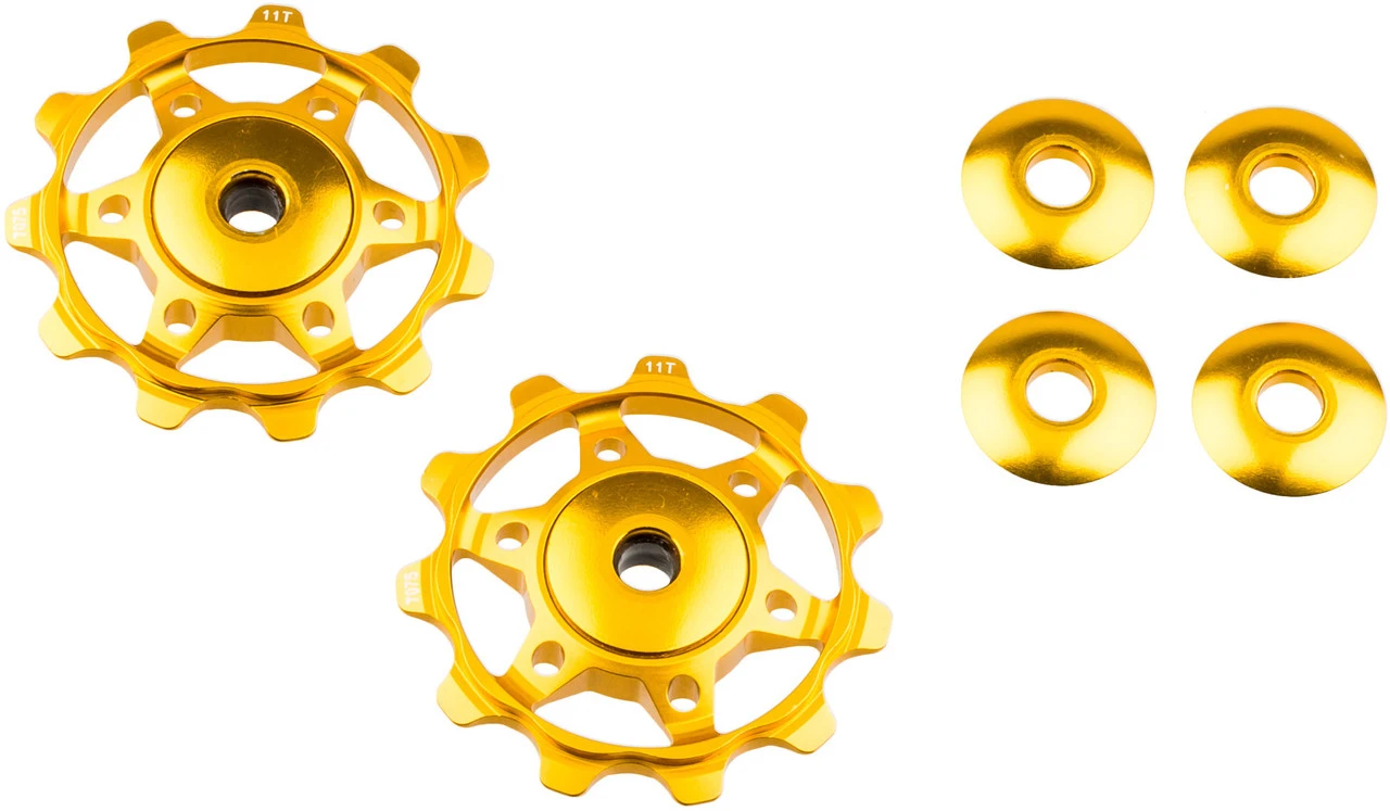 Die NC-17 Schaltwerksröllchen garantieren ein reibungsloses Schaltverhalten und geräuscharmen Lauf der Kette. Um den präzisen Lauf der Stahlkette zu gewährleisten verfügen die Industrielager über eine Technik, die ein minimales seitliches Spiel zuzulässt. So kann sich die Kette über das Schaltwerk exakt positionieren ohne dabei den Schaltprozess negativ zu beeinflussen. Die 11 Zähne stehen für einen ruhigen Lauf der Kette und decken dabei die Einsatzgebiete von 8- bis 11-fach Kettenschaltungen ab. Im Lieferumfang sind AL Spacer enthalten, die die Kompatibilität zu fast allen Schaltwerken gewährleisten.