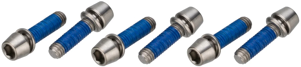 Features:wahlweise aus Edelstahl oder aus Titankommen in Silbererhältlich als Set mit jeweils 6 StückKompatibilität:Ritchey WCS 4-Axis VorbauAusführungen:Titan: