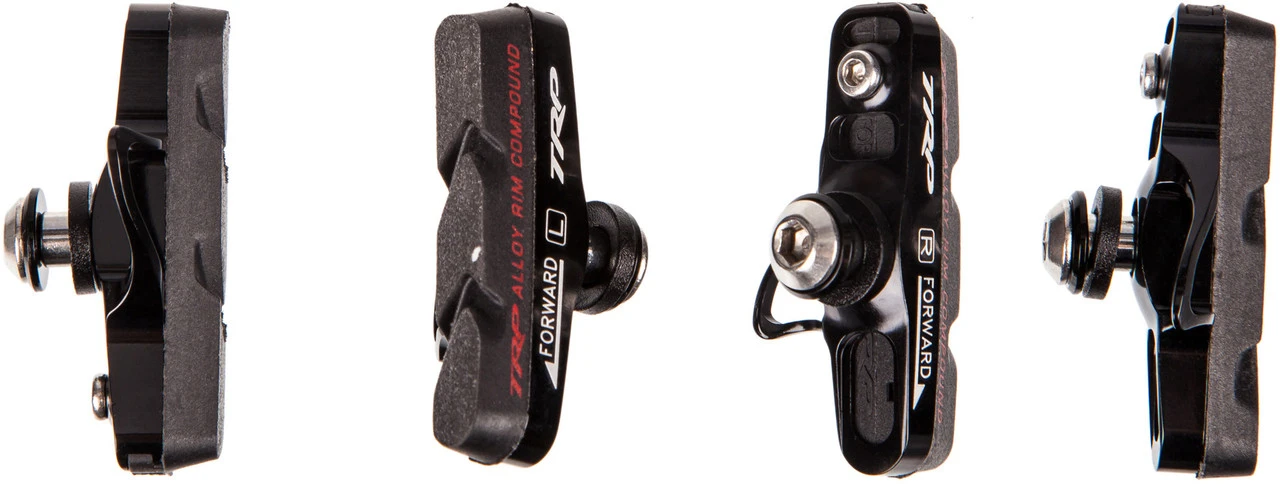 High-Performance Bremsbelaghalter und Bremsgummis für Rennradbremsen. Der Winkel ist in allen Richtungen einstellbar.